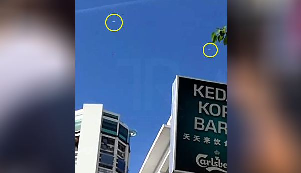 Video yang dimuat naik oleh Wang Soon You menunjukkan dua objek berwarna putih terbang berhampiran bangunan Komtar.