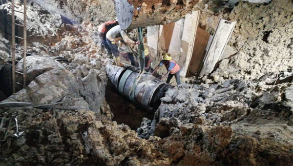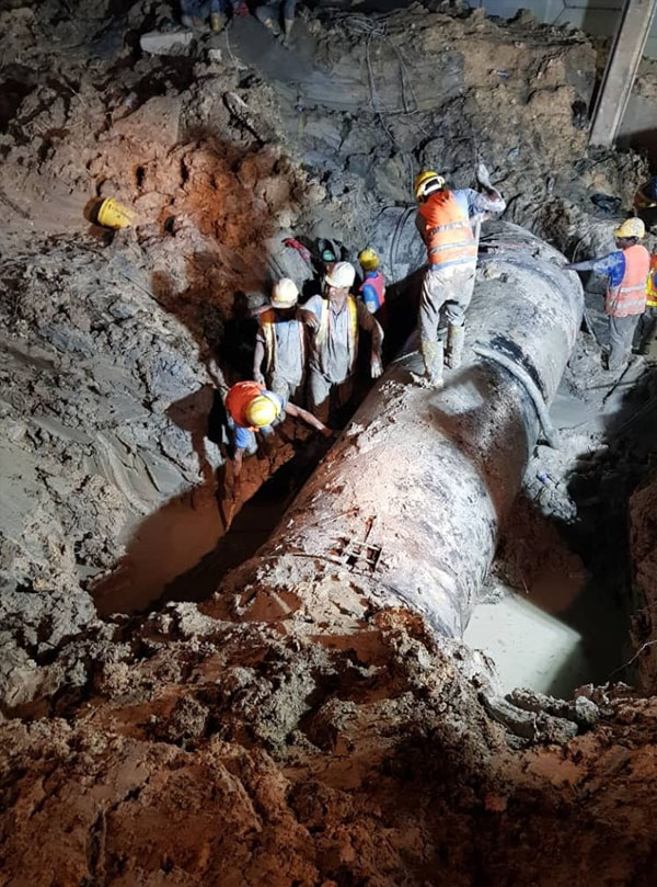 “..tempoh siap kerja-kerja pembaikan paip-paip utama yang pecah terpaksa dilanjutkan ekoran berlaku pergerakan tanah menyebabkan kelewatan proses kerja-kerja pembaikan.