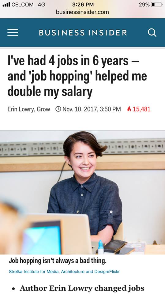 2. Always send you CV to other company every six months because you will increase your salary fast by jumping to another company rather than if you stay at one for years.