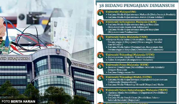 “Terpulang kepada universiti sama ada menambah jurusan atau menggugurkan program akademik ditawarkan,” katanya ketika diminta mengulas mengenai keputusan JPT menggugurkan 38 program akademik yang kebanyakannya sains dan kejuruteraan peringkat sarjana muda dan sarjana kerana tidak relevan dengan keperluan semasa industri dan masa depan graduan.