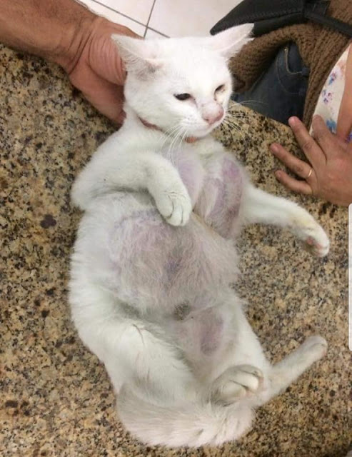 Seekor kucing betina terpaksa menahan derita untuk jangka masa yang lama gara-gara ‘kecerdikan’ yang melampau tuannya yang menjadi doktor haiwan yang tidak bertauliah.