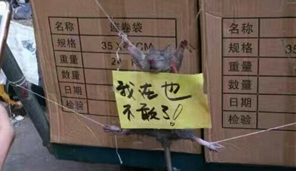 “Kawan saya jumpa tikus kecil ini dalam stor kedai. Selepas ditangkap, haiwan itu kemudian diikat dengan poster tersebut, Kasihan dia. Macam mana dia nak sambung perayaan Tahun Baru Cina?” kata Jiu Lian Shan She Zhang yang memuat naik gambar tersebut di laman Weibo.