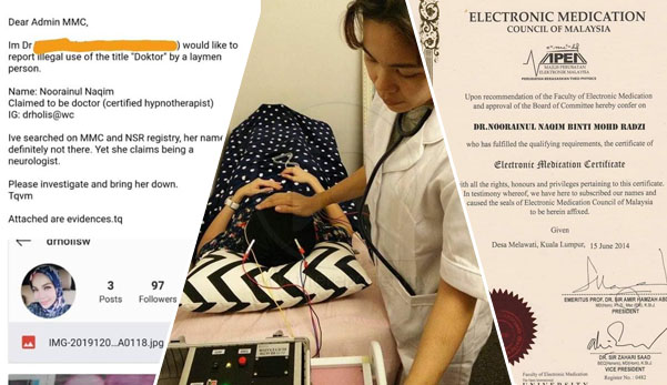 Kononnya ‘Dr’ Noorainul Naqim. Dia mengaku sebagai Neurologist bai. Bukan biasa-biasa. Kalau dia nak kencing, dia terus up yang paling atas sekali. Tapi bila check nama dekat Malaysia Medical Council (MMC), tak wujud rupanya.