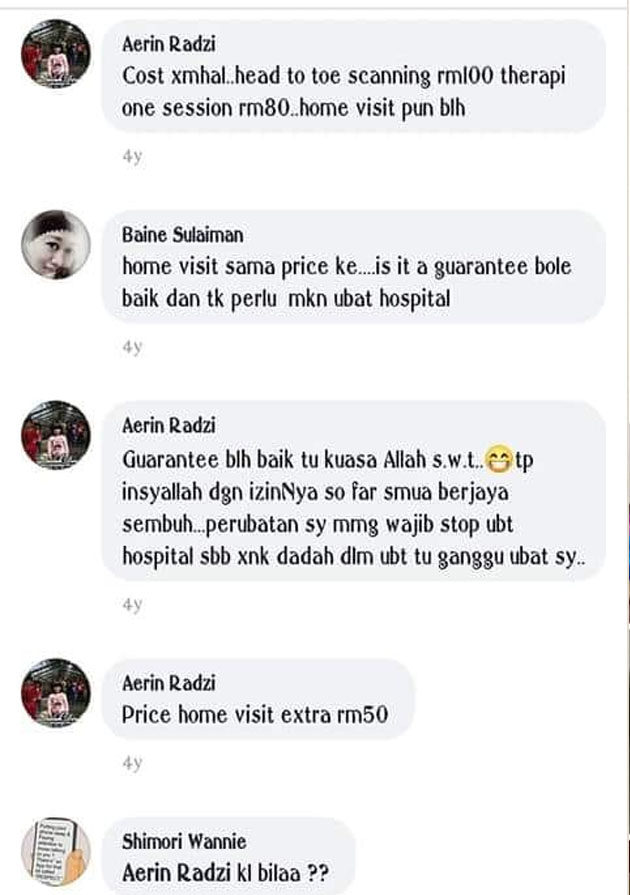 Selain menyediakan khidmat merawat penyakit buah pinggang, strok, darah tinggi, kanser, kencing manis, mandul dan banyak lagi, mereka juga mendakwa boleh memberi rawatan kepada pesakit yang terkena gangguan jin.