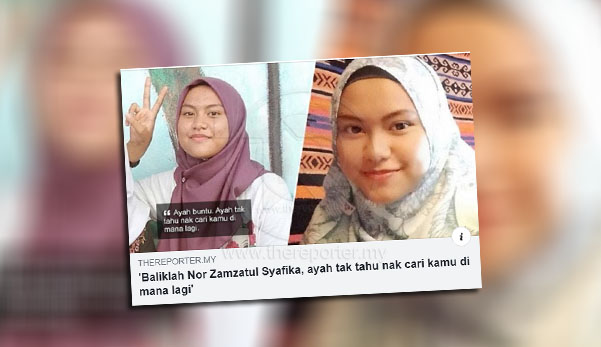 Menurut bapanya, Zamri, anaknya telah ditemui dalam keadan selamat dan telah dibawa pulang.