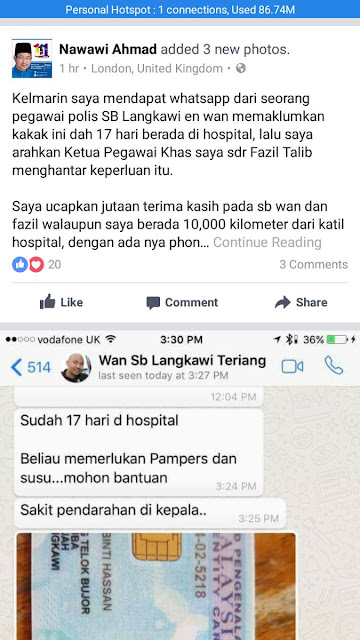 “Sudah 17 hari di hospital. Beliau memerlukan pampers dan susu. Mohon bantuan. Sakit pendarahan di kepala. Mohon pertimbangan dari Dato,” kata individu bernama Wan.