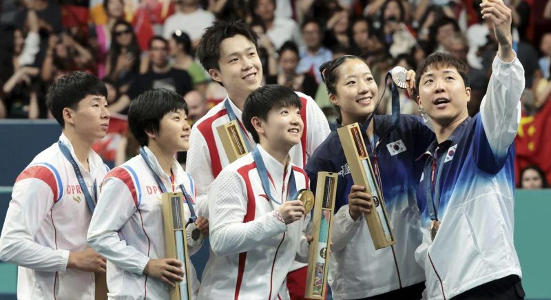 Pada 31 Julai lalu, atlet dari China, Korea Utara dan Korea Selatan menerima pingat untuk acara beregu campuran pingpong di Sukan Olimpik Paris 2024.