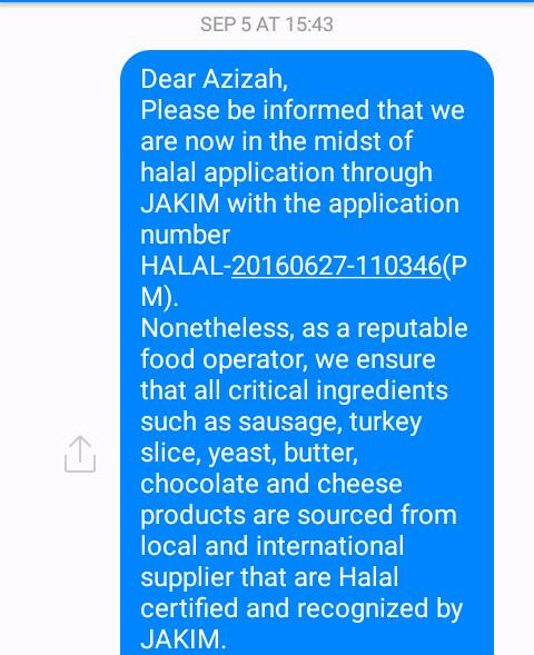 Menurut Azizah, beberapa tahun yang lalu dia pernah bertanya pada seorang pekerja premis berkenaan mengenai status halal mereka.