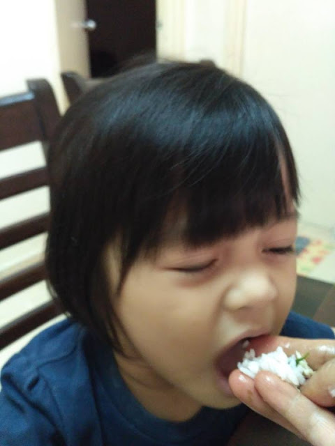 Lain sangat dengan Adra, dia memang suka makan. Mungkin masa mengandungkan dia, saya memang tak ada alahan dan makan apa sahaja. Jadi nak suap Adra makan lebih mudah dan dia memang berselera.