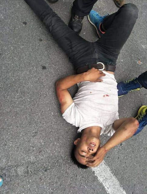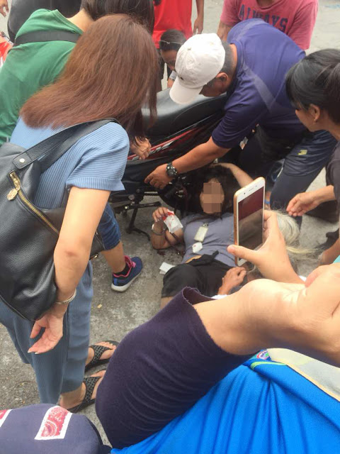 Bagaimanapun, mangsa terjatuh atas jalan dan rambutnya tersangkut pada roda motosikal dan diseret sebelum suspek turut terjatuh dari motosikal.
