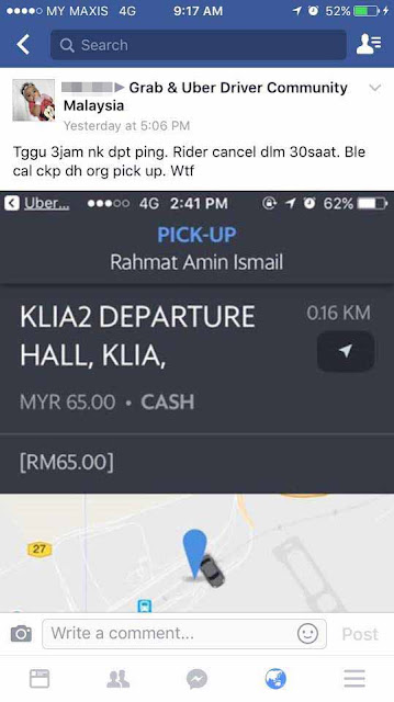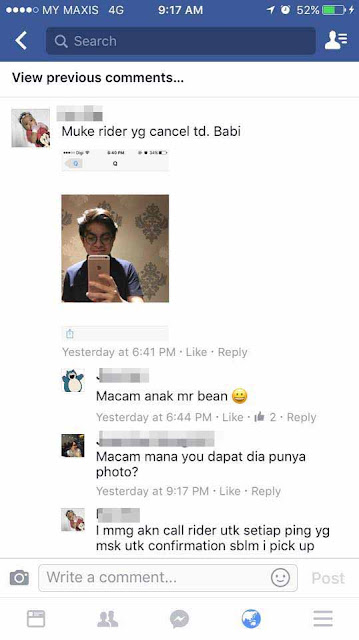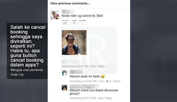 Saya telah memaklumkan kepada pemandu berkenaan alasan saya membatalkan tempahan itu. Tetapi bila keesokkan harinya, ramai rakan-rakan saya memaklumkan bahawa gambar saya viral di laman Facebook atas tuduhan menipu Grab Car / Uber.