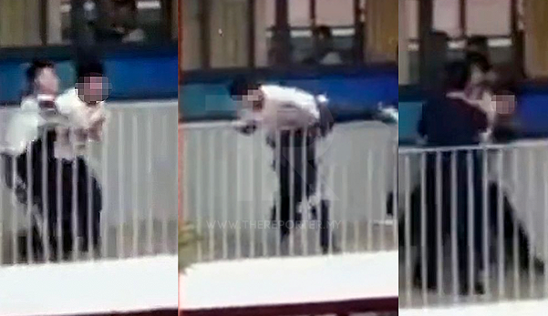 Namun, guru lelaki itu segera menarik pinggang dan menghalang pelajar berkenaan dari terjun ke bawah sebelum dibantu beberapa guru yang lain.