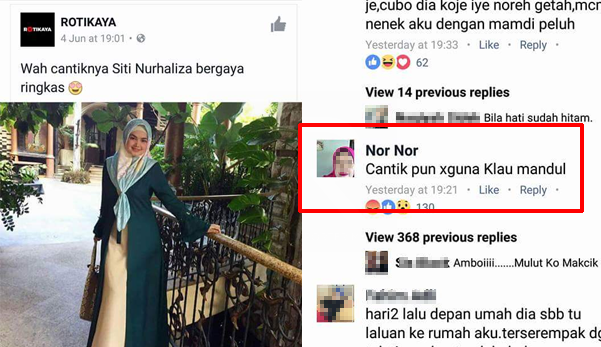 Bagaimanapun, seorang wanita bernama Nor Nor dengan selambanya memuat naik komen biadabnya.