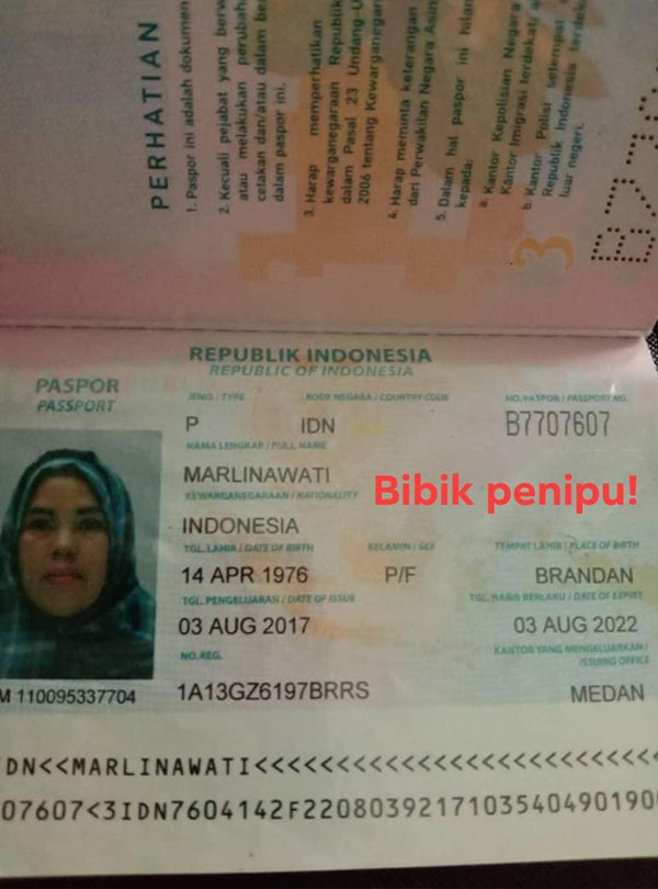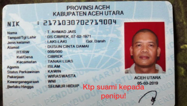 Dari paras rupanya tiada langsung riak seorang penipu. Orang dari Aceh, Indonesia. Tudungnya labuh seperti telekung! Malangnya bertopengkan syaitan.