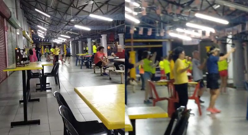 Operasi perniagaan di medan selera terganggu dek sikap tidak bertanggungjawab sekumpulan individu yang menceroboh ruang perniagaan untuk melakukan aktiviti zumba.