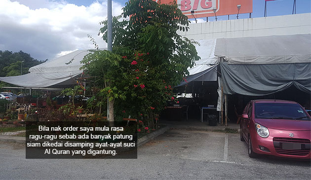 Tadi saya nak lunch kali ke 3 di sana. Bila nak order saya mula rasa ragu-ragu sebab ada banyak patung siam dikedai disamping ayat-ayat suci Al Quran yang digantung.