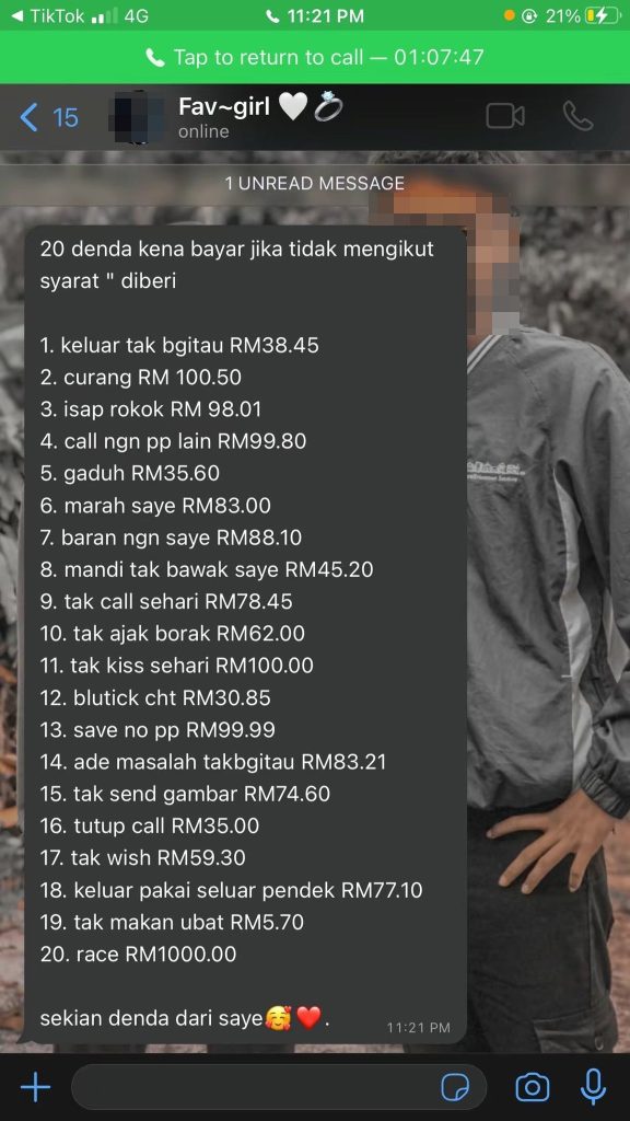 Dalam era digital ini, amalan pasangan bercinta seringkali menjadi topik hangat di media sosial. Bagaimanapun, setiap pasangan mempunyai cara tersendiri dalam menjalani hubungan mereka. Baru-baru ini, “tular gambar” seorang wanita yang telah menetapkan senarai denda khas kepada teman lelakinya.