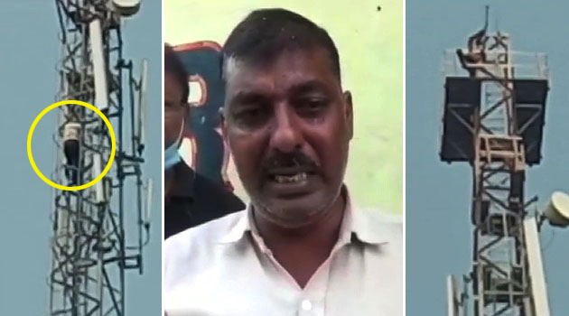 Tidak tahan mendengar bebelan isteri, seorang lelaki sanggup memanjat menara pencawang telekomunikasi di Uttar Pradesh, India.