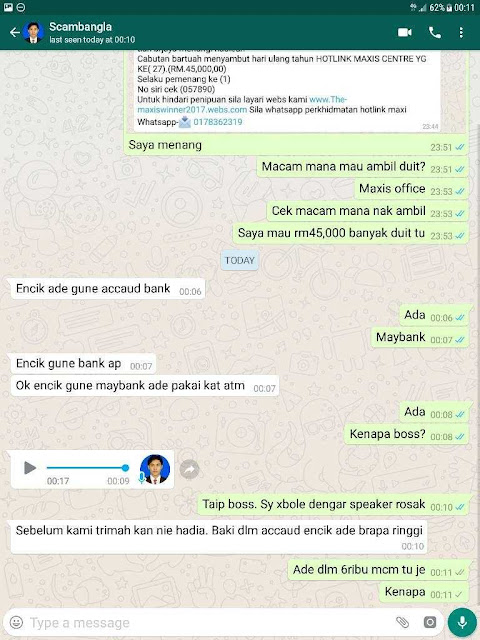 “Tapi yang paling kasihan, ada yang percaya dengan mesej scam ini sehingga mengalami kerugian atau hilang duit dalam akaun bank.
