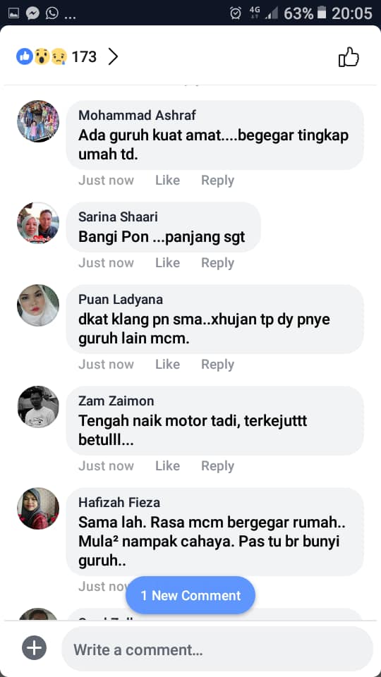 “Sampai bergegar siling rumah,” demikian kata netizen yang mendakwa rumahnya bergegar berikutan bunyi getaran yang kuat dipercayai guruh ketika waktu maghrib, malam tadi.