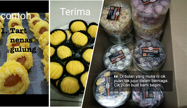 Seperti wanita ini, dia berasa sangat kecewa apabila kakaknya memberitahu dia menerima kuih raya tidak seperti di dalam gambar. Apabila mereka cuba menghubungi peniaga tersebut, segala panggilan dan WhatsApp tidak dibalas.