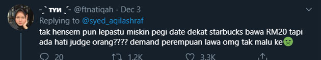 Aku dah habiskan RM20, dah siap paras-paras, naik bas lagi belakang muka kau dengan DP kau lain, memang ey. Nasib s**l time tu kau pakai make up. Kalau tak, aku lalu depan kau hye hye bye bye je yall.