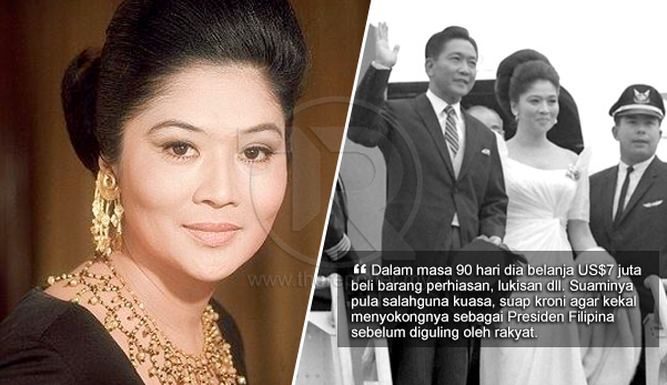Sementara itu, Imelda, lahir pada 2 Julai 1929 pula sangat gemar berbelanja dan kerap mengikut suaminya apabila berkunjung ke luar negara. Sedangkan rakyat di negaranya hidup dalam keadaan serba kekurangan dan miskin.