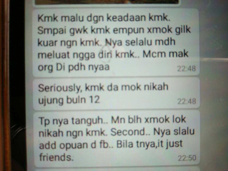 BARU reply mesej seorang wanita di mana teman lelakinya berubah sikap setelah berat badannya naik. Ingat pesanan ini, “lelaki yang baik akan menerima diri kita seadanya”.
