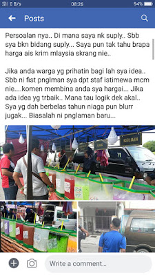 Adoi, kerja apa yang aku nak bagi dia ini eh? Ini pengalaman baru buat aku. Mati akal juga. Niat nak tolong tapi aku tak tahu nak bagi kerja apa. Aku pun post dalam group Facebook, niat di hati aku nak dia buat Aiskrim Malaysia. Aku nak cari pembeli. Macam-macam idea yang mereka beri.