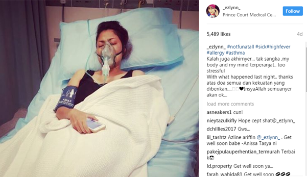 25 Mei, Ezlynn melalui Instagramnya memaklumkan bahawa dia berada dalam keadaan tertekan dan terkejut sehingga jatuh sakit dan mendapat rawatan di Prince Court Medical Centre.