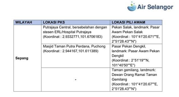 “Para pengguna disarankan untuk mengambil bekalan air alternatif di pili-pili awam kerana bantuan melalui lori-lori tangki air diutamakan kepada premis-premis kritikal seperti hospital dan pusat dialisis.