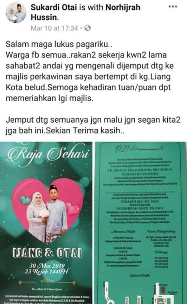 Perkahwinan pasangan ini baru sahaja genap sebulan pada hari ini. Tetapi tidak disangka ujian hebat yang perlu ditanggung oleh si suami. Ketika suami di luar sana sedang berbahagia bersama isteri dan anak-anak, lelaki ini menanggung kesedihan di atas kehilangan isteri tersayang.
