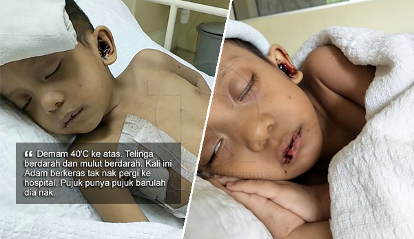 “Demam 40’C ke atas. Telinga berdarah dan mulut berdarah. Kali ini Adam berkeras tak nak pergi ke hospital. Pujuk punya pujuk barulah dia nak.
