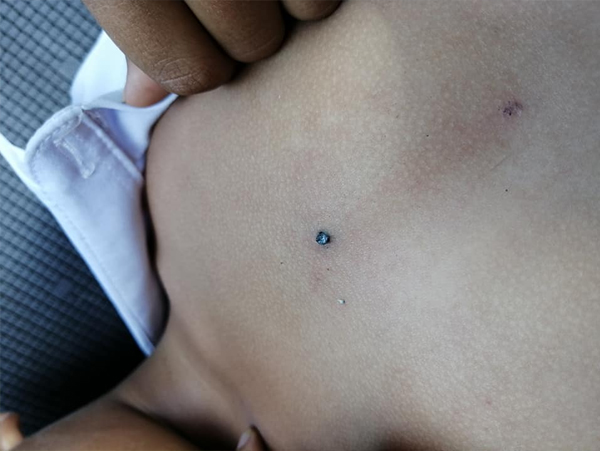 Namun beberapa hari kemudian, pasangan suami isteri itu menerima panggilan dari pihak sekolah yang mengatakan dada anaknya ditusuk dengan pensil oleh murid yang sama.