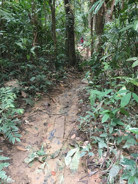 Pada mulanya memang saya fikir kebun la, kitorang park kereta kat tepi kebun sawit dan jalan kaki menuju ke dalam kebun. Kereta tak boleh lalu katanya. Menapak punya menapak, punya menapak. Eh, ke dalam lagi ke?? Hilang kelibat kelapa sawit, yang tinggal belukar dan semak samun.