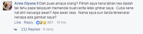 Sementara itu, seorang lagi rakannya, Arina Diyana juga menafikan dirinya terlibat dalam kes tersebut.