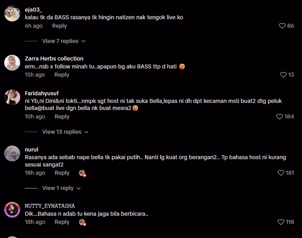 “Nama Bella langsung tak disebut, tapi semangat sangat nak kutuk pakaian dia. Kalau bukan sebab Bella, takkan 13,000 orang tengok live tu.”