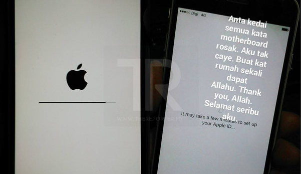 Keesokan harinya, pergi semula ke kedai itudan mereka kata kena hardisk, selepas itu motherboard rosak pula. Tahu tak berapa kos repair motherboard? Lebih baik beli iPhone yang baru dari betulkan motherboard itu. Tetapi saya tidak percaya sebab kebiasaannya motherboard rosak berpunca dari kejadian seperti iPhone terjatuh dan masuk air.