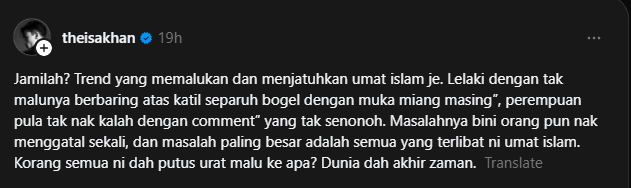 Isa Khan menegur trend Jamilah yang disifatkan sebagai menjatuhkan maruah.