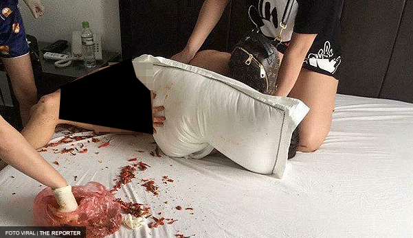 Mangsa tidak berdaya menghalang perbuatan mereka dan hanya mampu menutup wajahnya dengan bantal daripada dirakam lensa kamera.