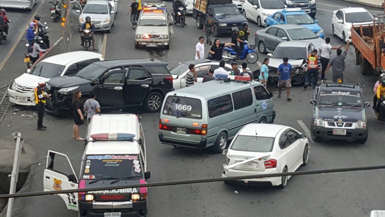 Dalam kejadian jam 4.30 petang, di Jalan Rangsit, Nakhon Nayok, Tambon Bung Yitow, Sabtu lalu telah menyebabkan kesesakan jalan raya sepanjang empat kilometer.