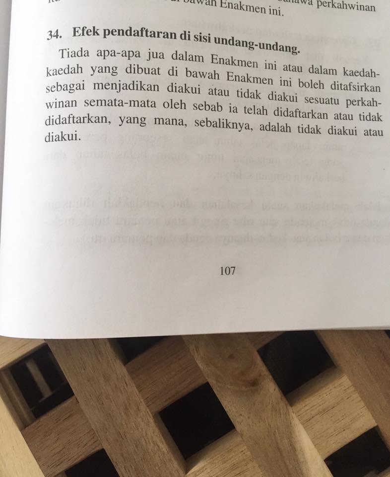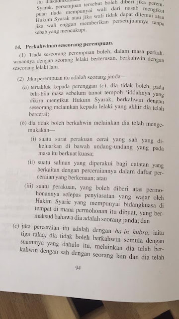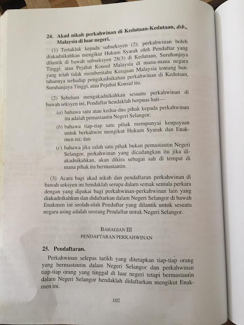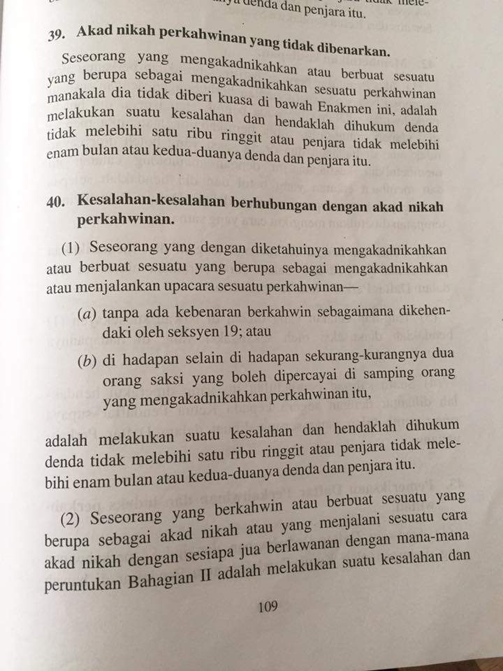 - Di bawah peruntukan Akta Wilayah Persekutuan atau Enakmen Undang-Undang Keluarga Islam Negeri-Negeri. Kegagalan memenuhi peruntukan menyebabkan perkahwinan atau perceraian atau rujuk tidak akan didaftarkan dan akan dikenakan penalti-penalti tertentu.