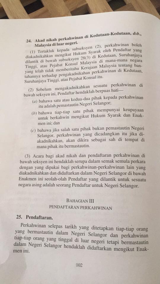 Perkahwinan di Malaysia perlu mematuhi dua (2) syarat: