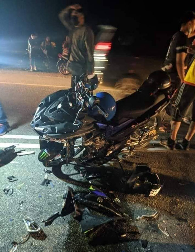 “Selepas itu, motosikal ditunggangi mangsa yang maut, sebuah lagi motosikal ditunggangi remaja berusia 18 tahun tidak sempat mengelak lalu keduanya melanggar bahagian kanan Proton Saga berkenaan.
