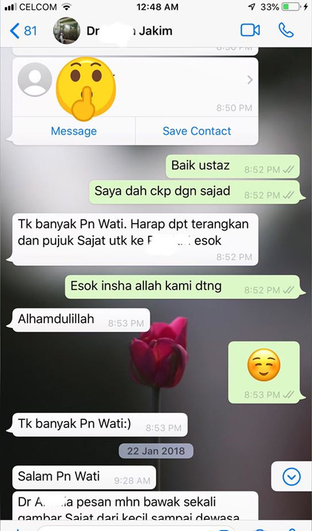 “Perbualan aku dengan pihak JAKIM pada 21 Januari 2019 untuk mengesahkan jantina kau. Tapi kau yang tak nak bagi kerjasama pada waktu itu.