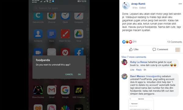 Di media sosial, netizen dilaporkan mula melancarkan boikot terhadap Foodpanda dengan membuang aplikasi Foodpanda dari telefon bimbit masing-masing.