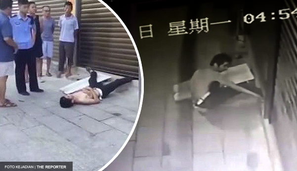 CHINA – Hajat seorang lelaki merompak sebuah kedai menemui kegagalan apabila rancangan jahatnya itu tergendala dek pintu automatik premis tersebut.
