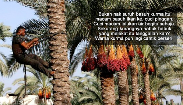 Kurma itu bukan dipetik terus masuk ke kotak. Sebaliknya dicampak tanpa ihsan tanpa perasaan di tanah yang ‘bersih’ dulu.