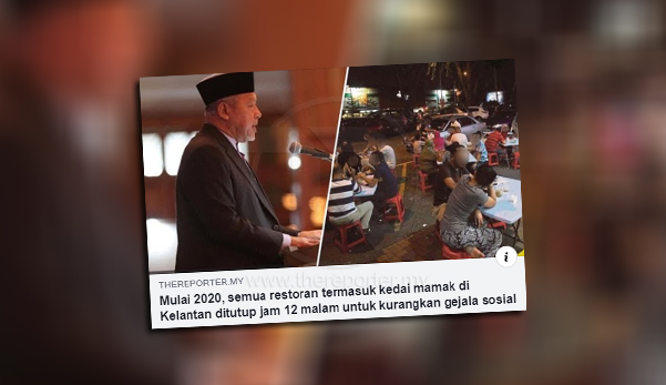 Baru-baru ini, Kerajaan Negeri Kelantan bercadang mengehadkan waktu berniaga bagi restoran di negeri itu sehingga jam 12 tengah malam bagi mengekang gejala sosial di kalangan remaja, mulai 2020.