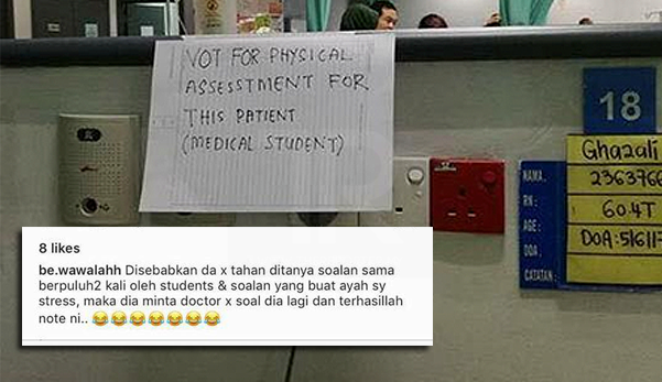 Namun, ada segelintir individu yang tidak digemar ditanya dengan pelbagai soalan seperti gambar yang viral di media sosial ini di mana pesakit mengalami stress dan meminta doktor menghalang doktor-doktor pelatih ini tidak menghampiri katilnya lagi.